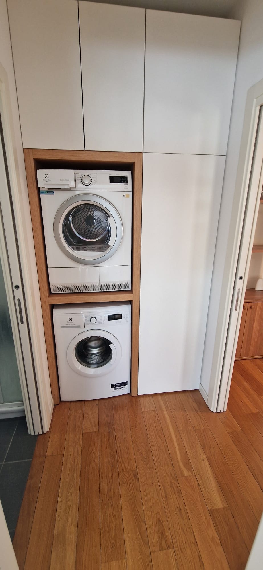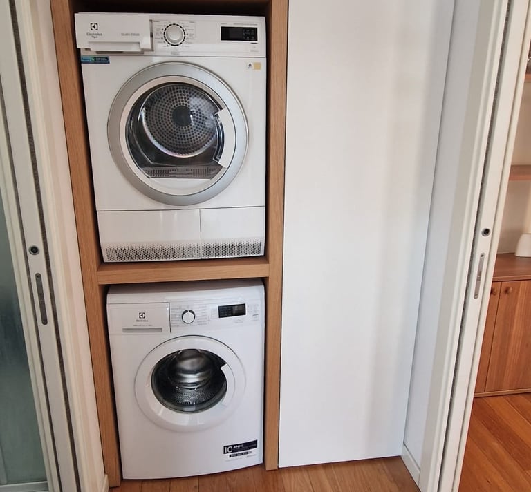 Tra la zona giorno e la zona notte è stato ricavato un pratico angolo lavanderia, pensato per offrire maggiore comodità durante il soggiorno.