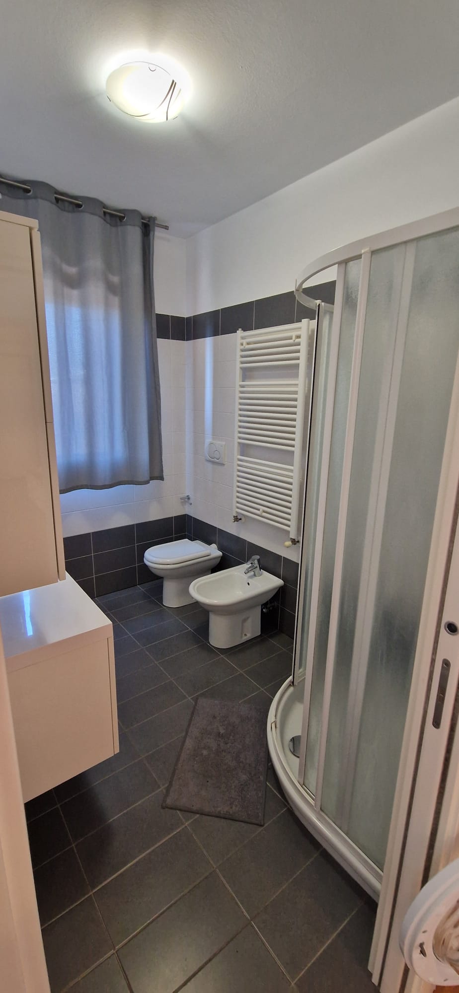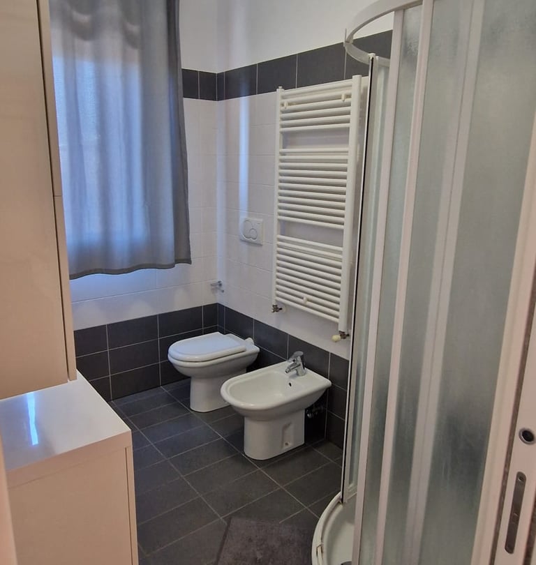 El baño del apartamento está diseñado para ofrecer comodidad y funcionalidad en cada detalle. Equipado con una amplia ducha, bidé y un elegante lavabo, es el espacio ideal para disfrutar de un momento de relax después de un día de exploración.